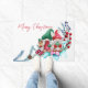 Jolie aquarelle gnome de Noël avec arbre de Noël et lanterne sur une couronne de mistletoe, poinsettia