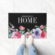 Paillasson Aquarelle rose Fleurs modernes Nom de famille Noir