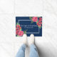 Paillasson Aquarelle Rouge et rose Fleurs bleu foncé Marine