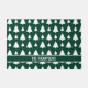 Le motif original de Destei, aux silhouettes de sapin de Noël blanc, sur une couleur arrière - plan verte. Il y a aussi une zone de texte personnalisable pour un nom ou un autre texte personnalisé.