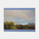 C'est une photo d'arc-en-ciel sur les champs par une journée ensoleillée avec des champs et des arbres verts.