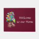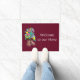 Joli tapis de porte à fleur arctique design mukluk boot "Welcome to our Home". Imprimé avec des couleurs vives et du texte blanc, en lettres. Design unique et disponible en deux tailles. Idéal pour le garage, la maison, la buanderie, la tanière, même votre bureau.