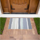 Porte à rayures simples et modernes, aux couleurs neutres. Les couleurs comprennent le bleu ardoise, le gris et une touche turquoise. Une première impression agréable pour les visiteurs de chez vous. Aussi disponible avec personnalisation de nom ou avec monogramme initial dans notre magasin. Objets correspondants disponibles dans notre magasin.
