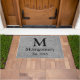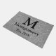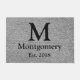 Natte en arête de poisson grise moderne avec la lettre noire de monogramme, le nom de famille, et la date établie.
