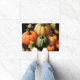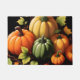 Cette oeuvre botanique saisonnière présente une variété de citrouilles en orange, jaune et vert avec quelques feuilles contre un arrière - plan noir. Parfait pour la saison d'automne !