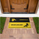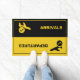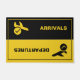 Arrivée à l'aéroport Départs tapis porte. Un tapis noir et jaune pour tout ventilateur d'aviation, pilote, agent de bord, avion ou employé d'aéroport.