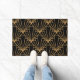 Ce paillasson a un design Art Déco de diamants et de triangles en or sur un champ de noir.