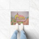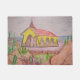 Un crayon d'aquarelle et la peinture de la chapelle Alto Vista à Aruba avec la mer des Caraïbes et divers cactus, rochers et arbustes épineux.