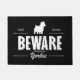 Ce design audacieux blanc-sur-noir permet à vos visiteurs de savoir ce qu'ils affrontent avant de mettre le pied dans votre maison. Doté d'une silhouette d'un Yorkshire Terrier avec le texte : Attention : Patrouillé par Yorkie. Très amusant et un look propre pour votre porche ou votre tablette avant. Vient en deux tailles et de nombreux choix de race!