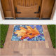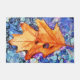Une jolie aquarelle d'une feuille d'automne brune contre un arrière - plan d'eau bleue.
