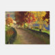 Une ruelle étroite traverse une verrière de campagne calme, remplie de champs de foin et de haies, bordée de murs en pierre et d'herbes à fleurs tombales. Deux chats jouent dans la ruelle et sur le mur à l'ombre des arbres colorés.