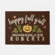 Natte classique et élégante pour couleurs de saison d'automne - "chute heureuse vous" texte avec un citrouille, les vignes, le feuille, et votre nom de famille - les jolies et colorées d'automne du brun auburn, de l'orange de butternut, du blanc de vert et de toile olive, et de plus.