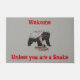 Faites rire vos invités et les vendeurs caressent avec ce blaireau au miel amusant sur le point de prendre un tapis de porte de cobra avec le slogan "Bienvenue, à moins que vous ne soyez un serpent". Attention, les blaireaux de miel sont vraiment les animaux les plus durs de la planète. Les blaireaux de miel s'attaqueront aux lions, aux serpents et à tout ce qui les gênera. Ce blaireau au miel et son tapis de porte en cobra est le cadeau idéal pour les amoureux des animaux et ceux qui admirent ces animaux courageux. Il se réjouit du fait que "les blaireaux de miel ne craignent aucun mal". Ce design est entièrement personnalisable pour vous permettre d'ajouter votre propre slogan si vous le souhaitez. Créée par l'artiste Catherine Sweetman