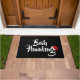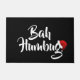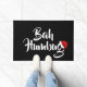 Tapis de porte est montré en noir et blanc avec un chapeau Bah Humbug et Santa. Tapis plus grand montré ici. Customisez ce tapis ou achetez tel quel.