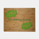 Tapis de porte vert et tan élégant, réalisé dans un arrière - plan en bois de bambou. Joli feuilles de fougères vertes, décorer les côtés supérieur gauche et inférieur droit du tapis. Personnalisez le texte vert pour lire ce que vous voulez.