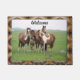 Un groupe cinq chevaux Appaloosa brun et blanc debout ensemble dans un champ vert.Avec un colt bébé.Ce tapis de sol a un cadre abstrait.Le texte et la couleur du texte peuvent être changés à n'importe quelle couleur que vous voulez qu'il soit avec l'étiquette personnalisée.