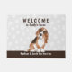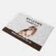 Illustration amusante d'un chien de garde avec lunettes. L'arrière - plan est une impression de pattes de chien