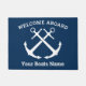 Bienvenue à bord avec ce tapis de porte de nom de bateau nautique personnalisé, avec deux ancrages croisés dans un design bleu marine et blanc saisissant. Personnalisez le tapis avec le nom de votre bateau et ajoutez une touche maritime élégante à votre entrée ou à votre pont de bateau.
