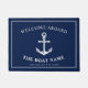 Une natte comportant une ancre nautique et le nom fait sur commande du propriétaire de bateau et du bateau.