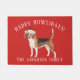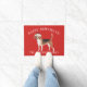 Paillasson de Noël adorable avec un Beagle portant un chapeau de santa sur un arrière - plan rouge festif.