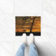 Ce joli tapis de sol de pâturage a un lever de soleil avec un cheval et un chêne. Cette photographie d'art primée a été prise sur la côte centrale de Californie, région de San Luis Obispo, comté nord dans une petite ville appelée Creston. Il est connu pour son pays de cheval, de grands espaces et de beaux chênes patrimoniaux.
