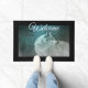 Paillasson Beau loup gris dans une forêt foncée Bienvenue