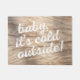 Natte ou tapis simple et moderne de plancher pour la saison d'hiver qui indique le "bébé, c'est outside froid dans un manuscrit embouti de style sur un arrière - plan en bois de planche.