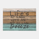 Vintage aqua bleu turquoise et vert coloré patiné planches de bateau ponton en bois motif. Avec "La vie est à l'aise avec une brise océanique", un texte de citation. Conçu pour les amateurs de voile, de bateau, de sports nautiques, de navigation, de voile, de plage, d'océan ou de mer.