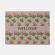 Belles roses roses roses sur tapis de porte beige. Le texte de bienvenue peut être personnalisé.