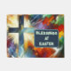 Bénédiction à Pâques avec une croix et des oeufs de Pâques et un arrière - plan coloré, cette Porte Mat fait un beau cadeau pour tout chrétien.