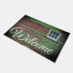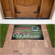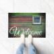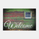 Ce paillasson a une fenêtre sur elle et il y est indiqué "Bienvenue".