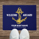 Paillasson Bienvenue à bord de Nautical Navy Blue Gold Nom du