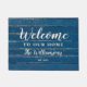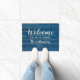 Accueillez vos invités avec ce tapis de porte personnalisé avec votre ensemble de texte personnalisé contre un arrière - plan patiné en bois. Idéal pour une maison de plage, cabine, camp, maison/bâtiment/entreprise balnéaire côtier et plus encore.
