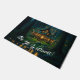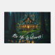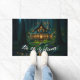 Bienvenue à vos invités spéciaux avec la peinture d'un paisible château elfe Tolkienesque dans une forêt sereine au bord d'un étang à la tombée de la nuit. Des lampes de fée éclairent les environs. Image réalisée avec Leonardo.ai.