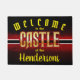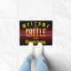 Ce paillasson audacieux sur le thème du château impose une présence à la porte avec une typographie forte et un style confiant.