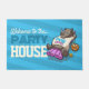 Faites de votre maison la maison de fête avec ce tapis de porte avec un rhinocéros détendu sur un gonflable. Utilisez "Personnalisez ce modèle" pour modifier le "Bienvenue à la... PARTY HOUSE" et "Party Animal" texte, si désiré. Un joyeux rhinocéros, profitant du soleil d'été, se rafraîchissant sur un rose vif gonflable dans la piscine. Prêt à faire la fête, avec canard en caoutchouc préféré et une boisson rafraîchissante sur un plateau flottant.