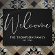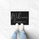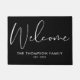 Un paillasson élégant noir et blanc avec une belle calligraphie de bienvenue et personnalisé avec votre nom de famille et une date spéciale. Conçu par Thisisnotme©