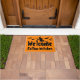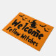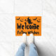 Un mignon tapis d'Halloween avec une sorcière volante, ses chauves-souris familières et volantes qui dit : "Welcome Fellow Witches.
