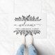 Tapis de sol sur mesure avec un dessin de feuillage dessiné à la main et « bienvenue » en calligraphie manuscrite moderne.