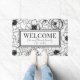 Accueillez les hôtes avec élégance grâce à ce tapis d'accueil personnalisé avec votre nom de famille, un message chaleureux "Bienvenue" et votre année "établie". Le design présente d'élégants contours floraux et botaniques en noir et blanc, avec des fleurs d'anémones, des bourgeons et des feuilles créant un motif sophistiqué autour d'un rectangle central. Le mélange délicat de typographie de script et de police serif ajoute une touche classique mais moderne, parfaite pour ajouter une ambiance élégante à votre entrée. Vous pouvez facilement customiser le texte et les couleurs pour correspondre à votre style personnel, ce qui en fait un ajout polyvalent à n'importe quelle maison. Ou vous pouvez le changer pour travailler pour un bureau wedding planner ou un fleuriste par exemple. Porte d'accueil personnalisée Nom de famille Blanc noir Motif Floral Home Décor Maison Chauffage Cadeau