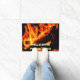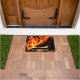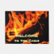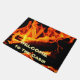 Des flammes chaudes génèrent un accueil chaleureux sur ce tapis de porte Cabine (ou ranch, maison ou chambre de réception). Vous pouvez modifier ou personnaliser les mots pour adapter un message à vos invités ou pour adapter un autre endroit, par exemple une vitrine conviviale, etc.