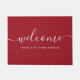 Tapis de porte avec le mot "Bienvenue" dans le script de calligraphie moderne et que vous pouvez personnaliser avec votre nom de propriété ou l'adresse de rue tout contre une couleur arrière - plan modifiable (cliquez sur personnaliser pour changer) qui est parfait pour votre propre maison ou votre propriété de location, hôtel, bed and breakfast, etc.