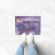 Ce mignon tapis d'Halloween présente des graphismes aquarelle des jambes de sorcière et du casquette. Voici le texte : Bienvenue amis Éffrayants ! Personnalisez le tapis de porte avec votre nom.