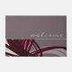 Le matelas de bienvenue présente un design abstrait et artistique moderne avec des tons de vin bordeaux et de gris avec des accents blancs et un message d'accueil personnalisé. La partie supérieure est composée d'un simple arrière - plan gris clair avec "bienvenue" présenté dans un script coque inférieur moderne. La partie inférieure est constituée de rubans gris, bordeaux, blancs et de couleur vin qui sont superposés et entrelacés pour donner perspective et profondeur à l'arrière - plan gris. Montré avec un message d'accueil personnalisé dans un script moderne, ce mat élégant est conçu avec du texte personnalisé et des graphiques vectoriels. Vous pouvez customiser en changeant le message d'accueil en texte de votre choix à l'aide du champ fourni. Customisez plus loin en accédant à la section calques pour visualiser les images et modifier la couleur arrière - plan ou d'autres éléments de conception selon votre goût, ou utilisez le bouton "contacter le concepteur" pour obtenir de l'aide. Bienvenue dans votre maison ou votre espace de bureau avec ce somptueux tapis décoratif. Les portes d'accueil sont une façon merveilleuse de saluer vos invités et des cadeaux de maison modernes réfléchis pour les nouveaux propriétaires dans votre vie.