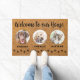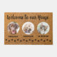 Bienvenue aux invités avec ce drôle de tapis de portes ! "Bienvenue à notre Maison." Personnalisez avec vos animaux de compagnie photos et noms. Ce mat Welcome Doormat présente un style rustique et un style noir avec des empreintes de pattes. DROIT D'AUTEUR © 2022 Judy Burrows, Black Dog Art - Tous droits réservés. Bienvenue Fundy Animaux Maison Custom 3 Chat Chien Photo Doormat
