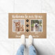 Bienvenue aux invités avec ce drôle de tapis de portes ! "Bienvenue à notre Maison." Personnalisez avec vos animaux de compagnie photos et noms. Parfait pour accueillir les visiteurs dans votre maison.
