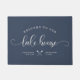 Écriture de brosse moderne et chic Lire BIENVENUE À NOTRE MAISON DU LAC dans un design à la mode basé sur la typographie. Décor de maison de lac sur mesure pour votre maison loin de la maison. À la fois romantique et élégante, notre tapis bleu marine poussiéreux porte une illustration de canoë douce entre votre emplacement et l'année établie.