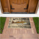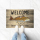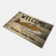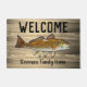 Bienvenue à la Maison "Votre Nom de Famille", ou changez en chalet. Un tapis d'accueil à thème pêche pour la famille qui aime pêcher. Le design comprend un sébaste et un arrière - plan rustique.