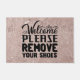 Beau tapis de porte rose or de bienvenue. Retirez les chaussures, s'il vous plaît.