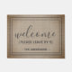 Cette drôle de conception de tapis de portes comporte les mots "Welcome Please Leave By 9". Personnalisez ce mignon tapis de porte rustique faux burlap avec votre nom de famille et votre salutation personnalisée. Le cadeau unique moderne de chauffage ou de nouveau propriétaire.